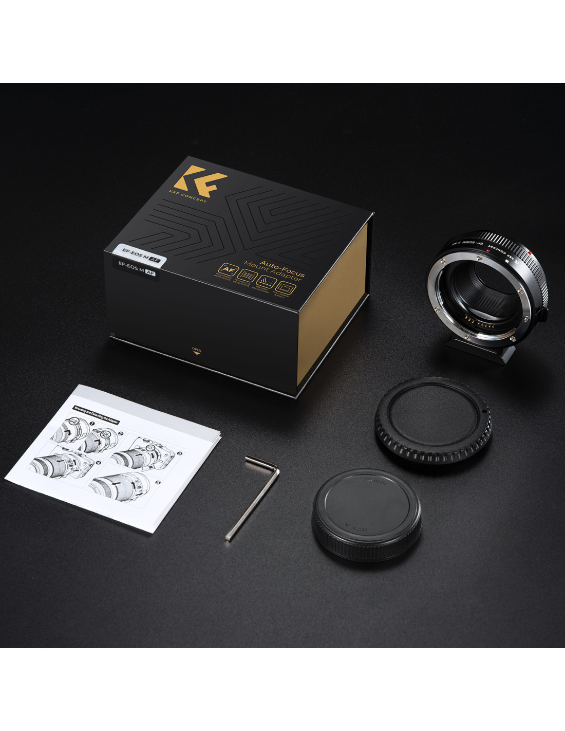 K&F ConceptAdapter K&F Concept EF-EOS M s samodejnim ostrenjem in nadzorom zaslonke je opremljen s pozlačenimi kontakti, ki zagotavljajo hitro samodejno ostrenje, hitro zaznavanje in natančno sliko.