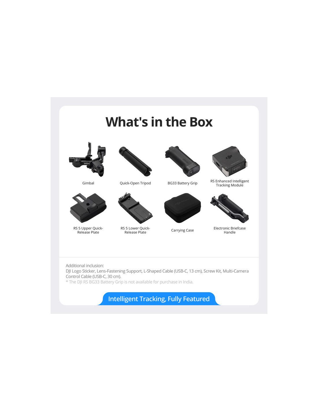 - Kombinirani komplet DJI RS 5 Gimbal z modulom za sledenje z umetno inteligenco in ročajem za aktovko